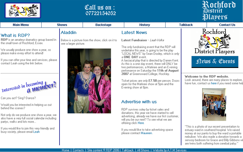 Rochford Amateur Dramatic Society, the District players; wanted a site that would allow them to add their pictures, send and recieve blogs, give advance warning of new plays and changes to the present one.