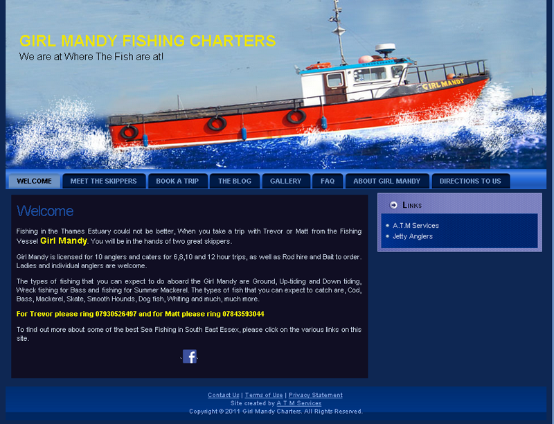 Girl Mandy Charters came to us with a specific design, wanting only a wordpress site so that it could use the images and blog features, to display their catches.